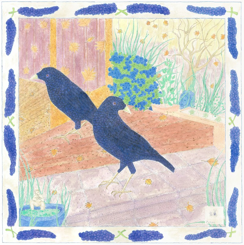 ‘Satin Bowerbirds’- ink and watercolour- SOLD