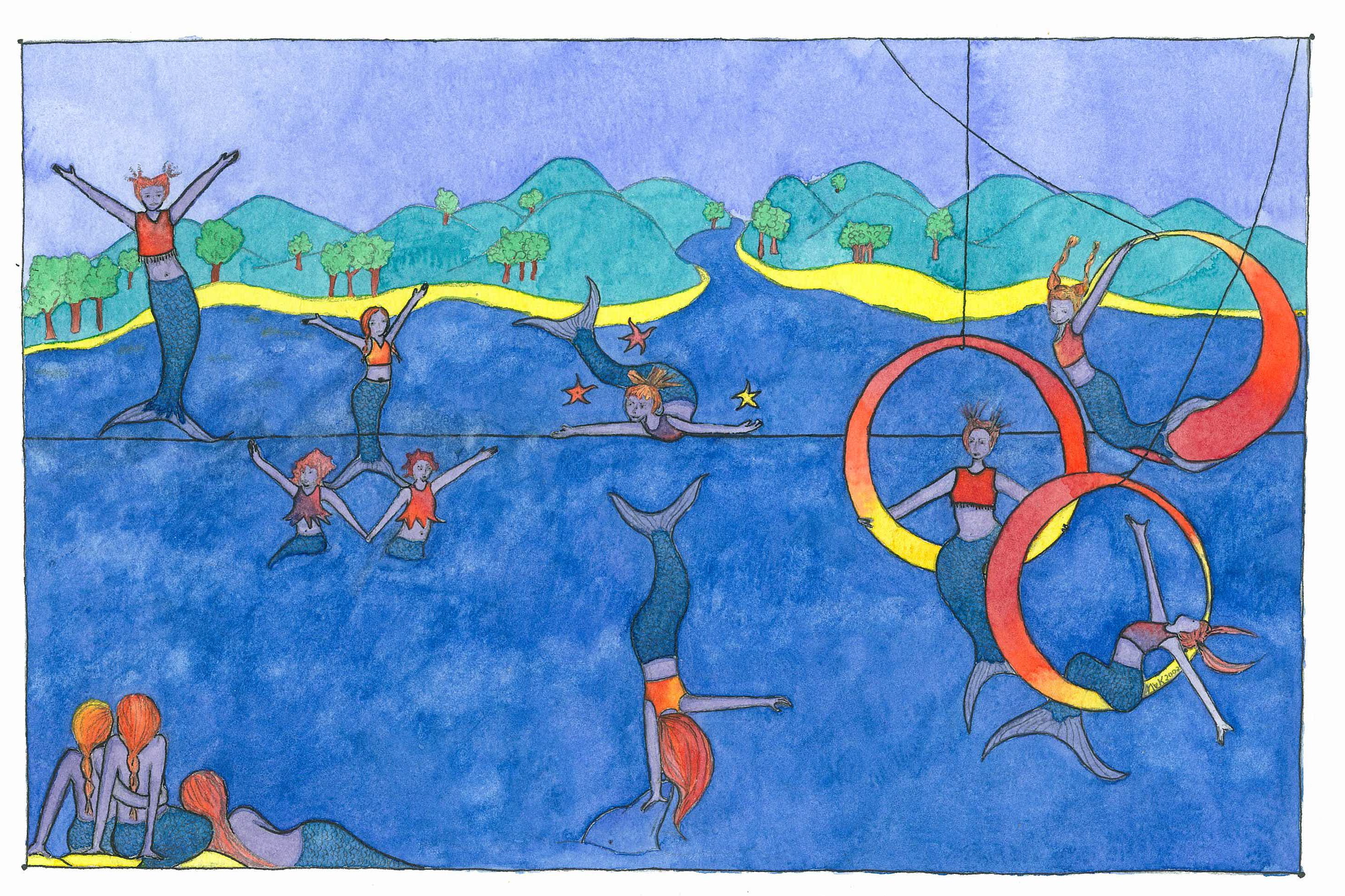 ‘Cirque du Mermaide’- 400×300, ink and watercolour- $250. SOLD