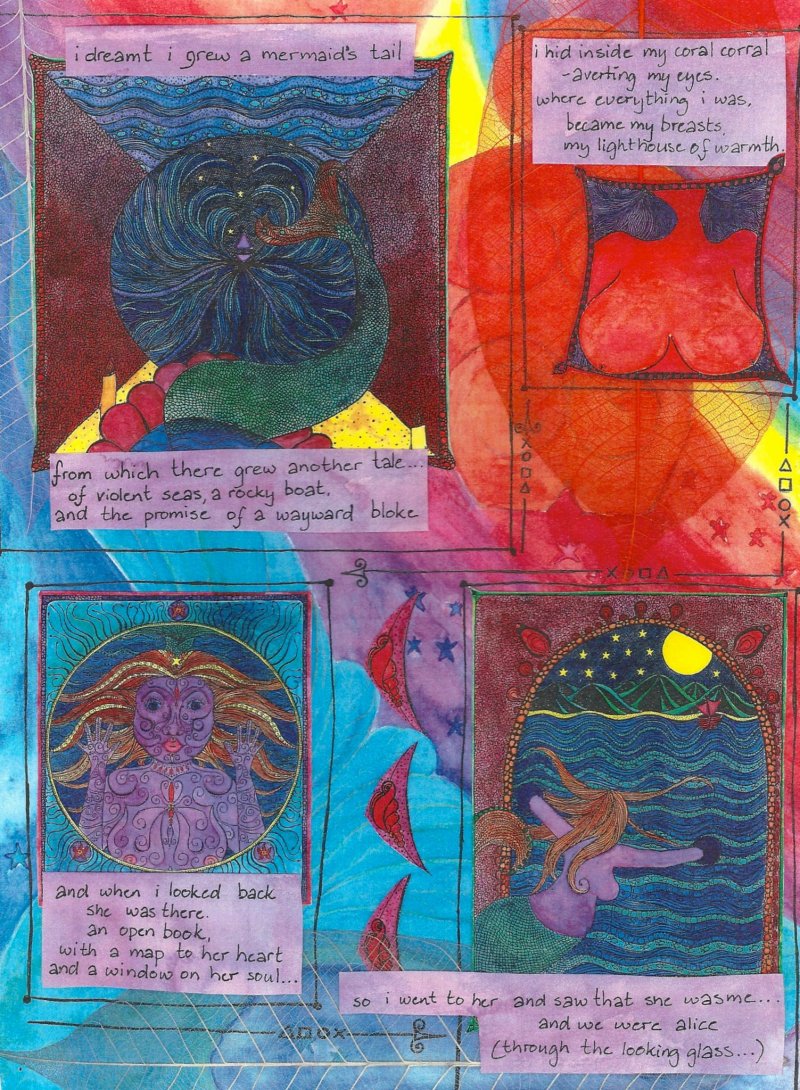 ‘i dreamt i grew a mermaid tail’ page 1- Mixed media collage (A3), $300 for page 1 and 2 together.