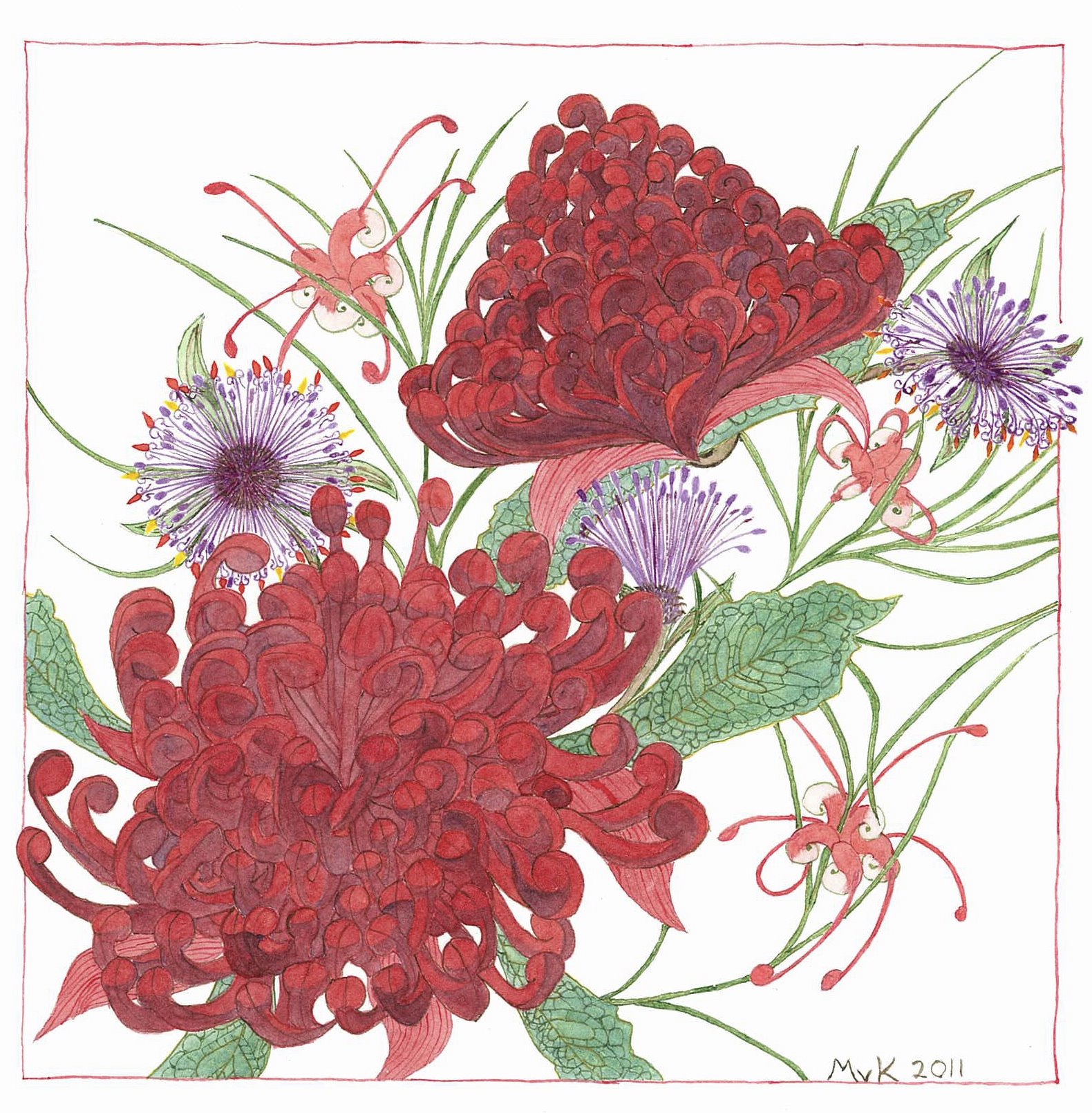 ‘Waratahs’- Ink and watercolour (A4), $200. SOLD